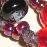 Red/black/gold bead multi-strand bracelet on linen thread